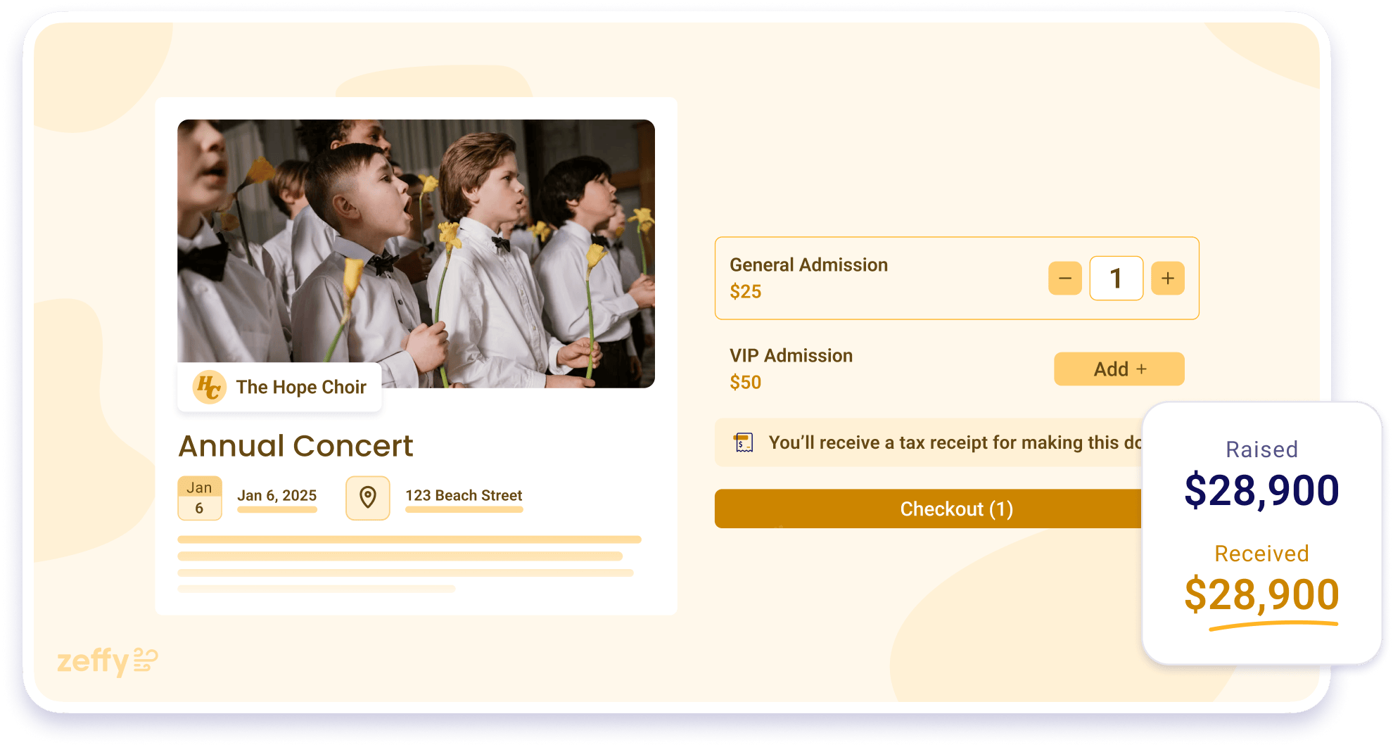 Sell more tickets for your next fundraising event with frictionless ticketing forms.
