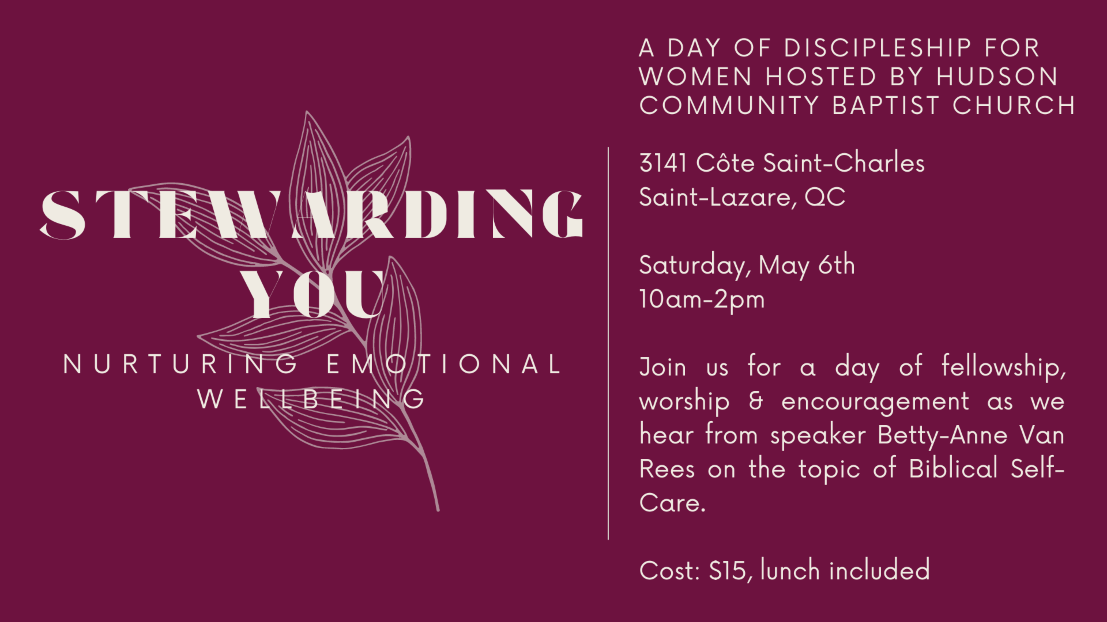 Stewarding You: Nurturing Emotional Wellbeing - A Day of Discipleship for Women