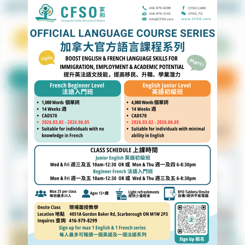 Mon & Thu 週一及四 6-8:30pm