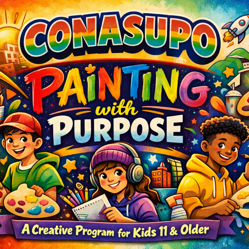 Painting with Purpose is a youth enrichment program designed for children ages 7 and older that uses guided art classes to build creativity, confidence, emotional awareness, and compassion.Through weekly instructor-led painting sessions, participants explore artistic techniques while developing teamwork, focus, and self-expression in a safe, supportive environment. Each class includes individual canvases and all art supplies, with programming aligned to CONASUPO’s mission of uplifting youth and strengthening families.What’s Included4 guided painting classes per month (approximately one class per week)Individual canvas for each participantAll paint supplies and materials providedTrained, background-checked instructorsA structured, youth-centered learning environmentEnrollment & Pricing OptionsCreative Cause (Primary Enrollment): $100/month per childDouble Brush Add-On: $50/month per additional childExtra Brush Pass: $25 for additional class access (space permitting)Program NotesEnrollment is monthly and renews automatically unless canceledCancellations must be submitted at least 20 days prior to the renewal dateProgram fees are non-refundableClass availability is limited to maintain quality instruction and supervisionYour participation supports CONASUPO’s community programs while providing your child with a meaningful creative experience rooted in growth, compassion, and community.