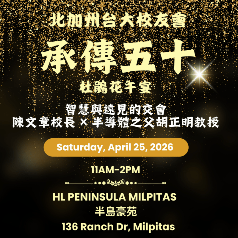 北加州台大校友會是一個充滿熱情與凝聚力的社團組織,由來自國立台灣大學的傑出校友組成,涵蓋各行各業、橫跨多個世代。校友們在灣區持續發揮影響力,不僅在專業領域表現卓越,也積極參與社區事務與文化傳承。