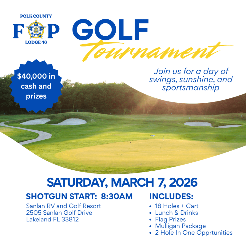 The Polk County Fraternal Order of Police Lodge 46 supports law enforcement families and community initiatives through fundraising events, like golf tournaments, and programs that honor fallen officers and assist local youth and families in need.