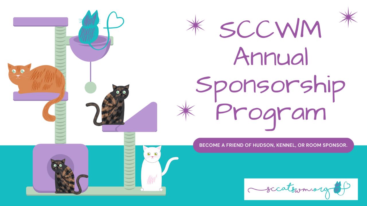 The Room Sponsorship includes a name plaque on the room and a quarterly email about what is happening in your sponsored room! Your gift of $1,250 will help cover the costs of the room for one year. It will provide quality food, toys, and litter for the occupants!