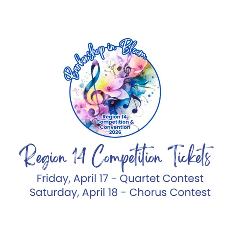 Come enjoy the Region 14 quartet contest on Friday, April 18, 2026. Purchase this ticket if you are a friend/family/guest/spectator!