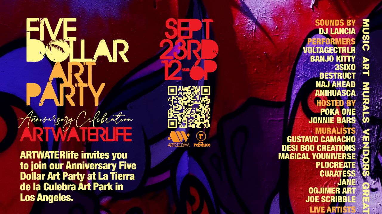 Here is your ticket to our one year anniversary experience. Ticket sales are being donated to help the nonprofit ARTWATERlife distribute art supplies to underserved communities and create accessible experiences like the Five Dollar Art Party.