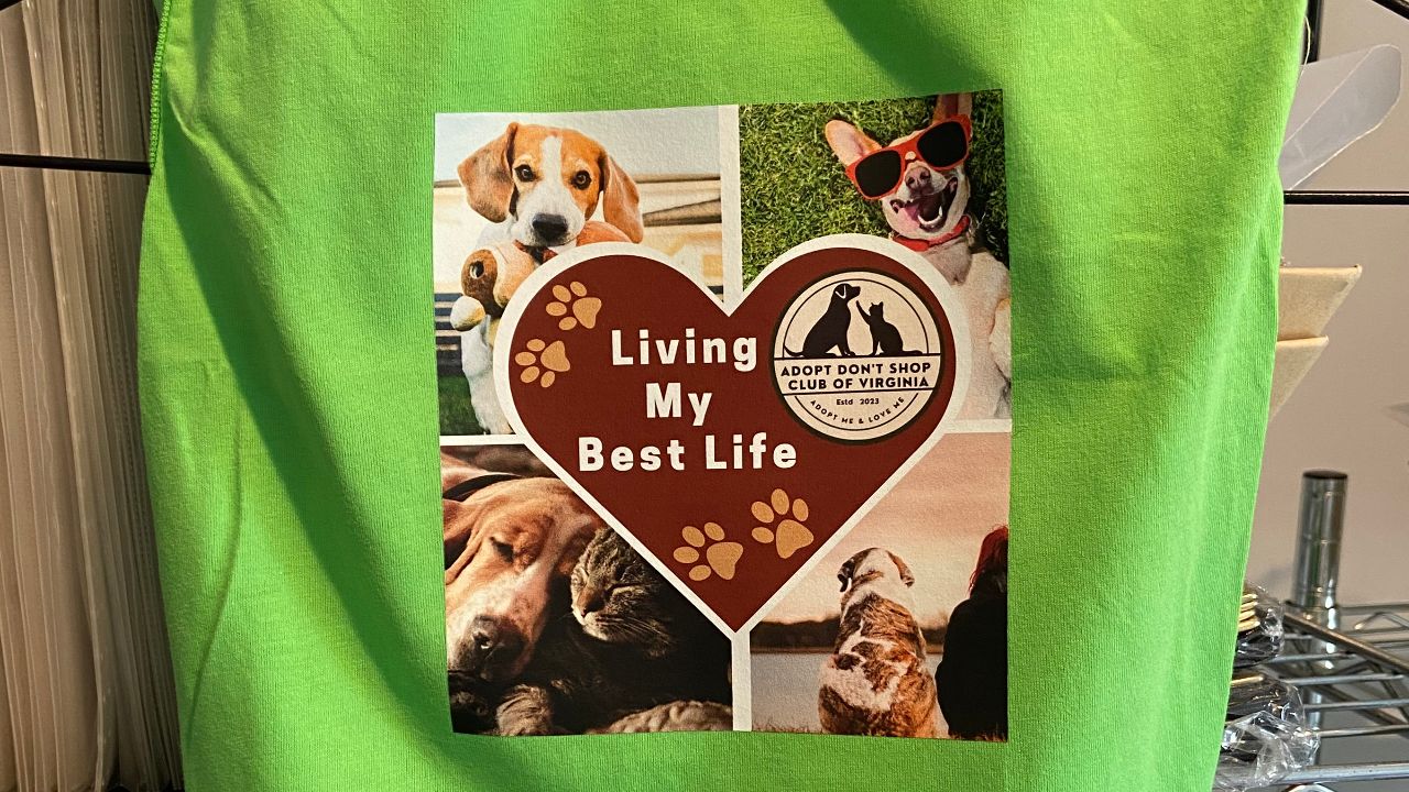 Large T-Shirt fits dogs and cats with a chest size of 18 inches around and a neck size of 12.5 inches around. Large is available in green and orange.