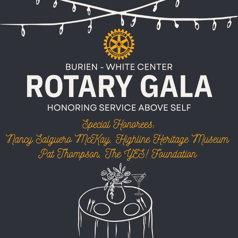 Our gala includes dinner, no-host bar, silent and live auction, raffles, and most importantly the Service Above Self Awards where we honor local un-sung heroes from Burien and White Center.