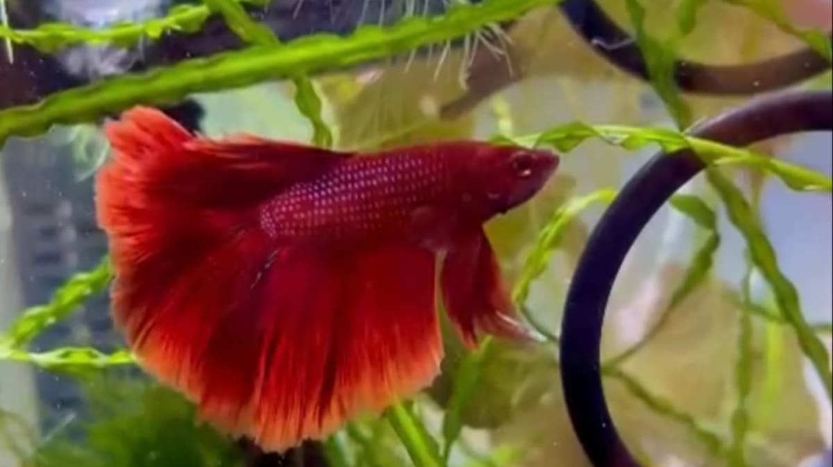 5" x 7" folded greeting card (blank inside) featuring a print of an original acrylic betta painting. Envelope included.