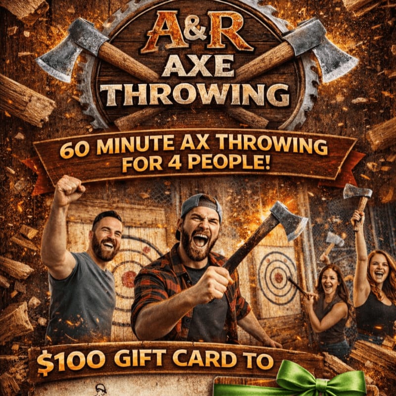 Enjoy tickets for 4 people to a 60-minute axe throwing session at A&R Axe Throwing — then grab a meal with a $100 gift card to Trenchers Delicatessen.