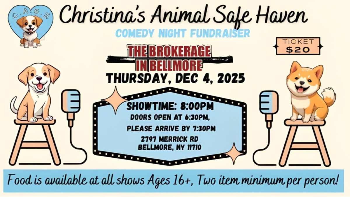 Join Christina’s Animal Safe Haven (C.A.S.H.) for our Comedy Night Fundraiser at The Brokerage Comedy Club in Bellmore!