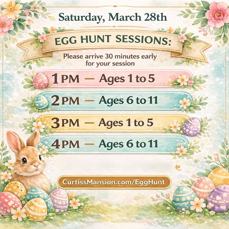 Please arrive 30 minutes early to pick up your wristband at the entrance of the Mansion. Easter bag will be provided. Rain or shine - non-refundable