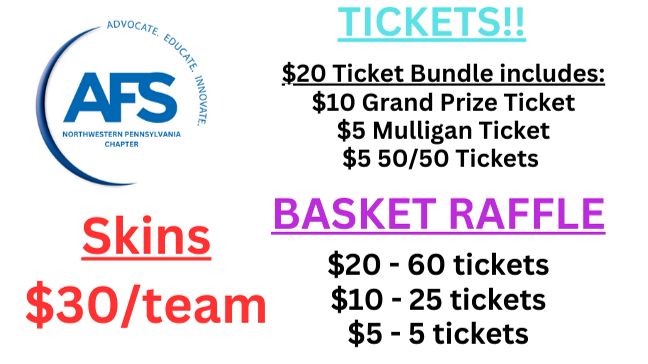 Includes Grand Prize Tickets $10 Mulligan Tickets $5 50/50 Tickets $5 for 10 tickets