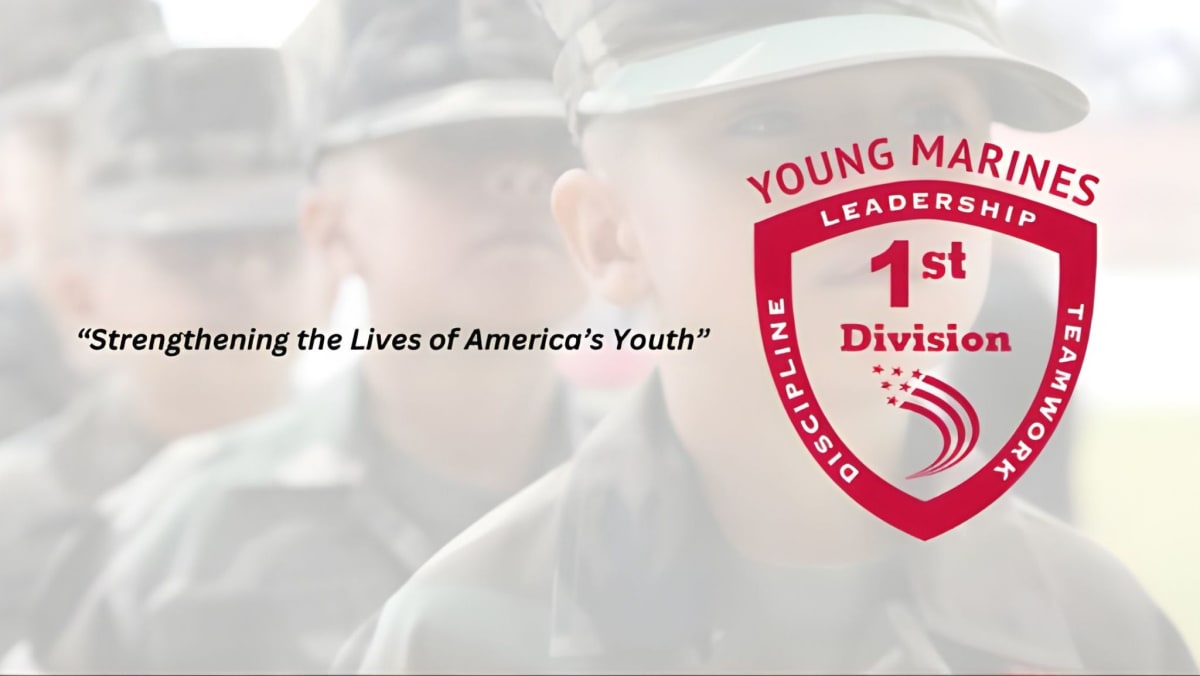 Young Marines T-Shirt with Young Marine logo and distressed American flag. Choice of the your Division logo on the back. Other colors are available: Red pictured