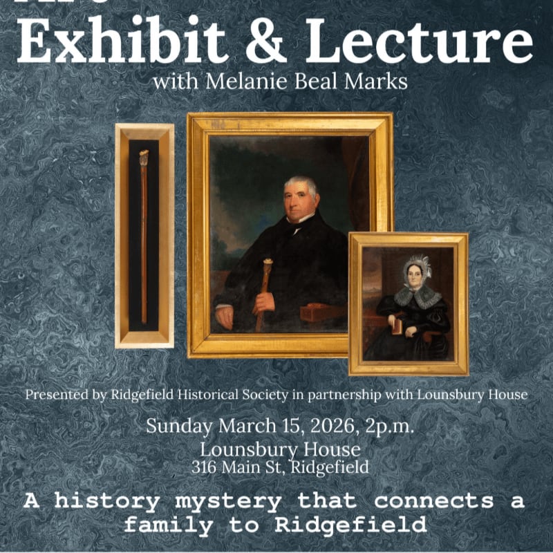 Admission for one to Melanie Beal Marks' illustrated presentation and exhibit, Faces from the Past, on Sunday, March 15, 2026, 2 p.m., at Lounsbury House, 316 Main Street, Ridgefield, CT. Tickets are limited and nonrefundable.