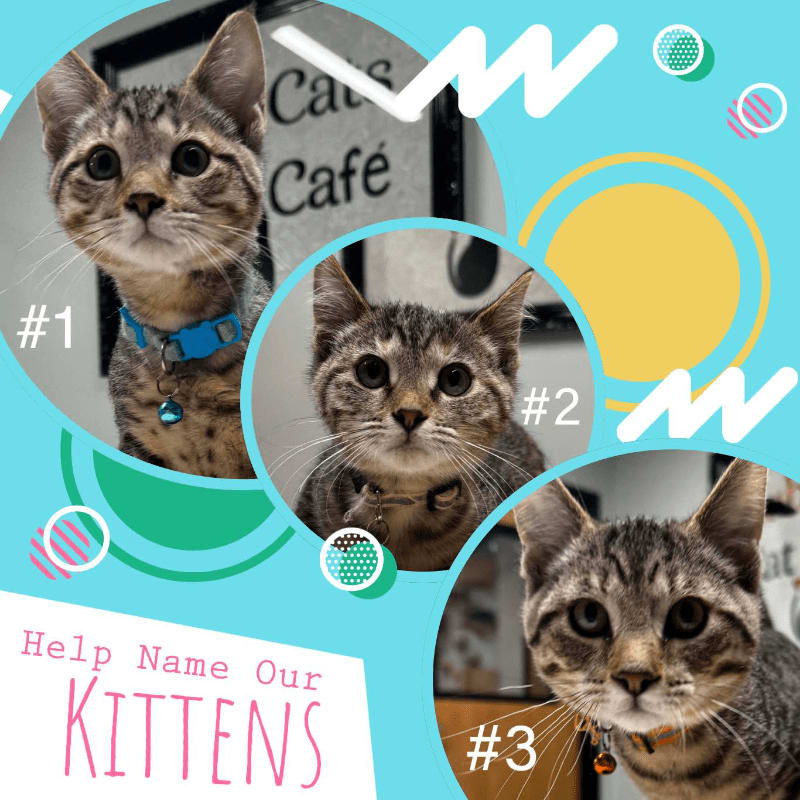 Suggest one name for each kitten. Add as many groups of 3 as you'd like