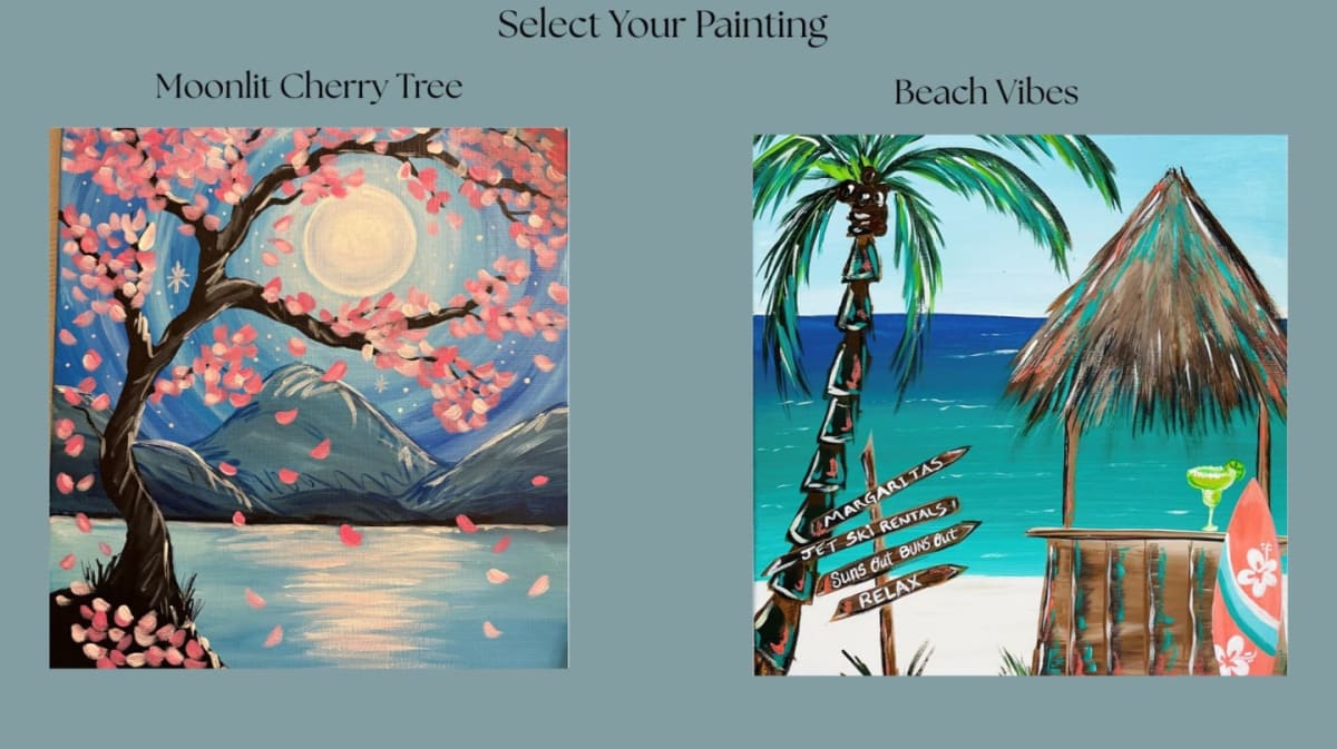 Painting session starts at 1:30 pm. This ticket includes: