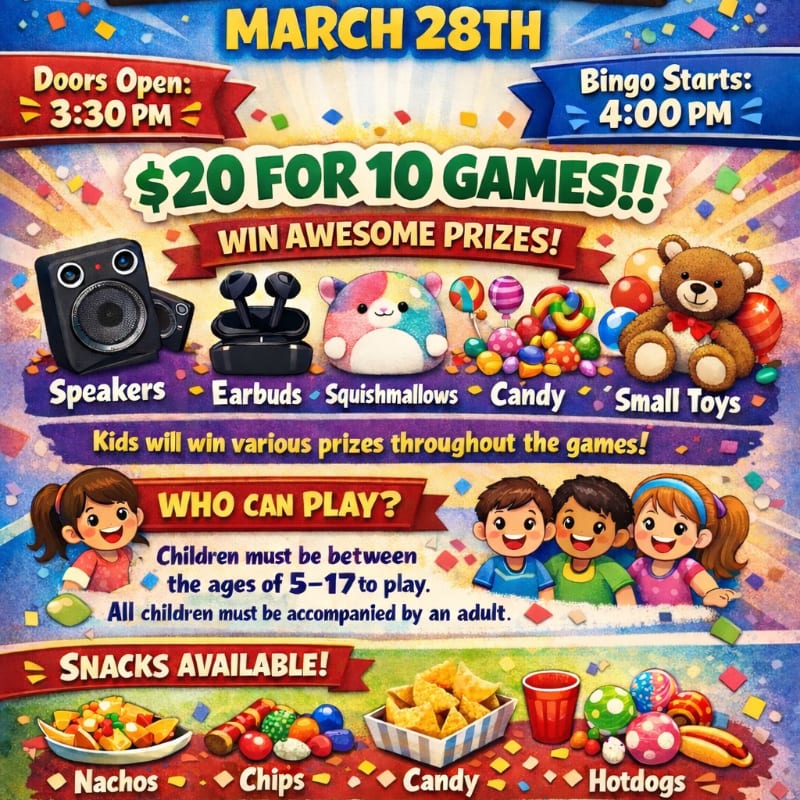 Enjoy 10 games of bingo with awesome prizes!