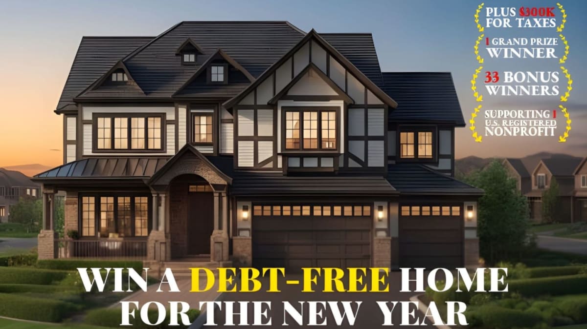 Take a breath and eliminate financial stress. Win a debt-free homes—while benefiting real charitable causes. Every entry helps someone ease burdens — and yes, that someone could be you..