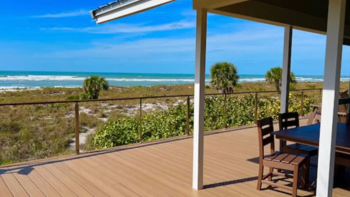 Spend a special week at Sand Dollar Cottage, a three bedroom, one and a half bath beachfront cottage with a private dock on LGI! Walk for miles on the beautiful sand beach where you can look for shells and shark teeth. Fish from the cottage’s private dock or from the beach—the fishing is great! Or, just relax in chairs at the beach or on Sand Dollar Cottage’s generous deck!