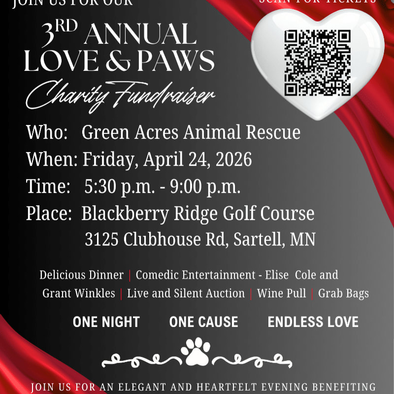 Includes dinner, entertainment (Comedians: Elise Cole & Grant Winkles), wine pull access, and participation in live and silent auctions. Proceeds support the cats and dogs of Green Acres Animal Rescue and help provide food, medical care, and safe shelter. 🐾