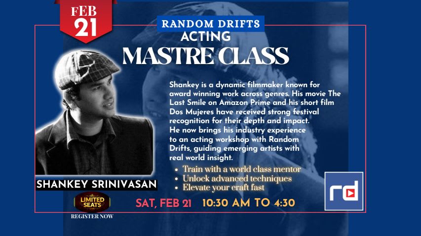 Shankey will now be sharing his expertise as he teaches an acting workshop in collaboration with Random Drifts, bringing his industry experience directly to emerging artists.