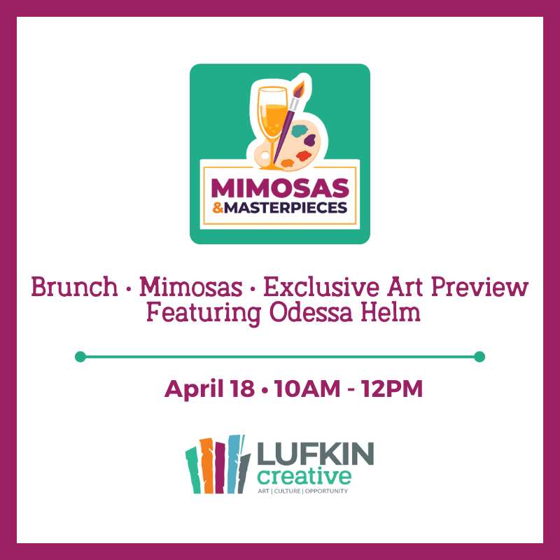 Sip mimosas, enjoy brunch, and preview exclusive artwork from 20 curated artists before the Art Walk begins. Featuring mural artist Odessa Helm, creator of the Angelina Mural in Cotton Square.