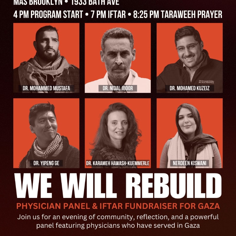 Enjoy the full program, including access to the physician panel, local vendors, and a complete iftar meal with a minimum donation of $50, and know that 100% of ticket sales will go directly to relief efforts in Palestine.