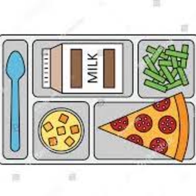 Pizza, salad bar, fruit, milk