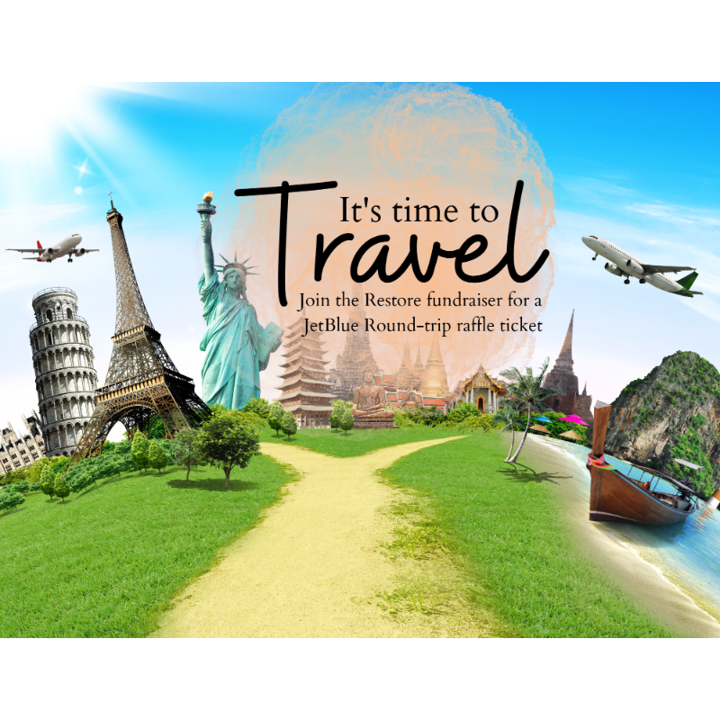 Raffle Ticket #1: One JetBlue round trip airline ticket including two luggage pieces (under 50lbs/each) Raffle price: $25/each