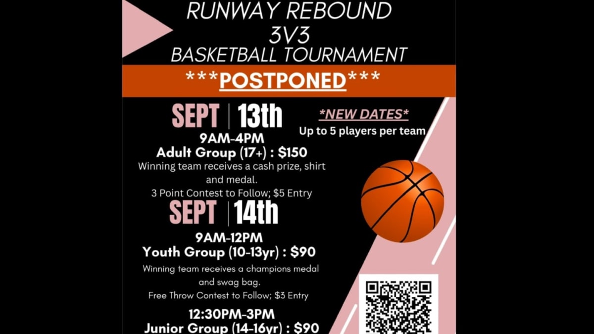 Youth co-ed 14-16 years old 3v3 Sunday, September 14th 12:30pm-3pm. Winning team receives a medal and swag bag. Suggested team of 5. Followed by a Free Throw contest $3.