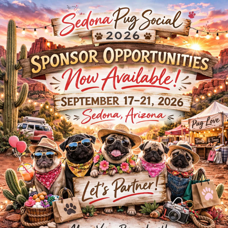 While this is our most accessible sponsorship tier, its impact is meaningful. Every contribution directly supports the atmosphere, hospitality, and nonprofit mission behind Sedona Pug Social.