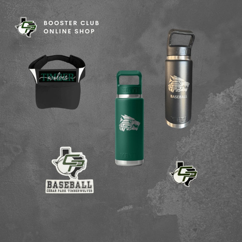 26 oz. Yeti Rambler Straw Bottle in forrest green featuring an etched Cedar Park High School wolf logo above the word "BASEBALL."