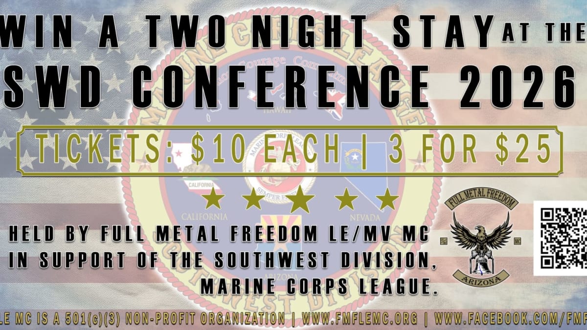 Three Ticket Entry for a chance to win a two day and one night stay at The Orleans Hotel & Casino for the Marine Corps League's Southwest Division's Conference 2026. Winning Ticket has no cash value. Must check in and stay at the hotel on the dates mentioned. No shows will forfeit the cost of the room paid by FMF.