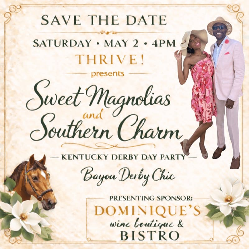 Your General Admission ticket includes entry to the Sweet Magnolias & Southern Charm Derby Day Party and complimentary mint juleps to celebrate the Run for the Roses. Guests will enjoy an elevated Derby Day experience featuring delicious bites, lively music, and the excitement of watching the most thrilling two minutes in sports. Additional cocktails, wine, and beverages will be available at the cash bar. Come dressed in your Bayou Derby Chic best and celebrate an afternoon of Southern Charm, Style, and Community.