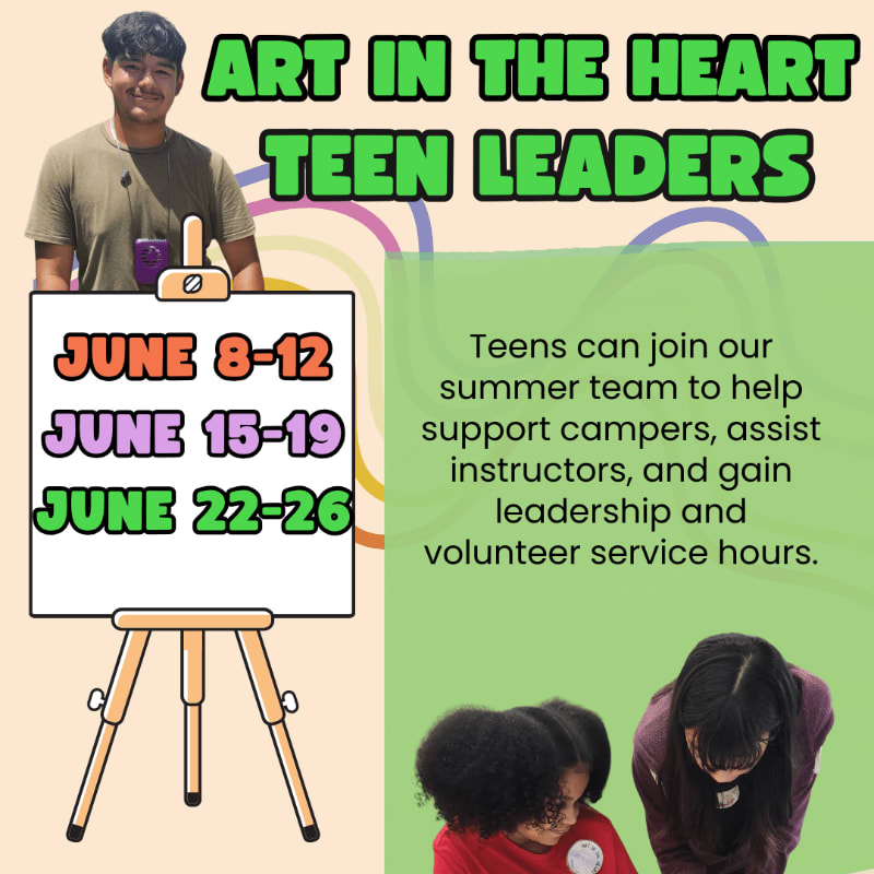 The Art House Youth Leaders Program is an opportunity for teens to support the Art in the Heart Summer Arts Camp while developing leadership, teamwork, and community service skills.