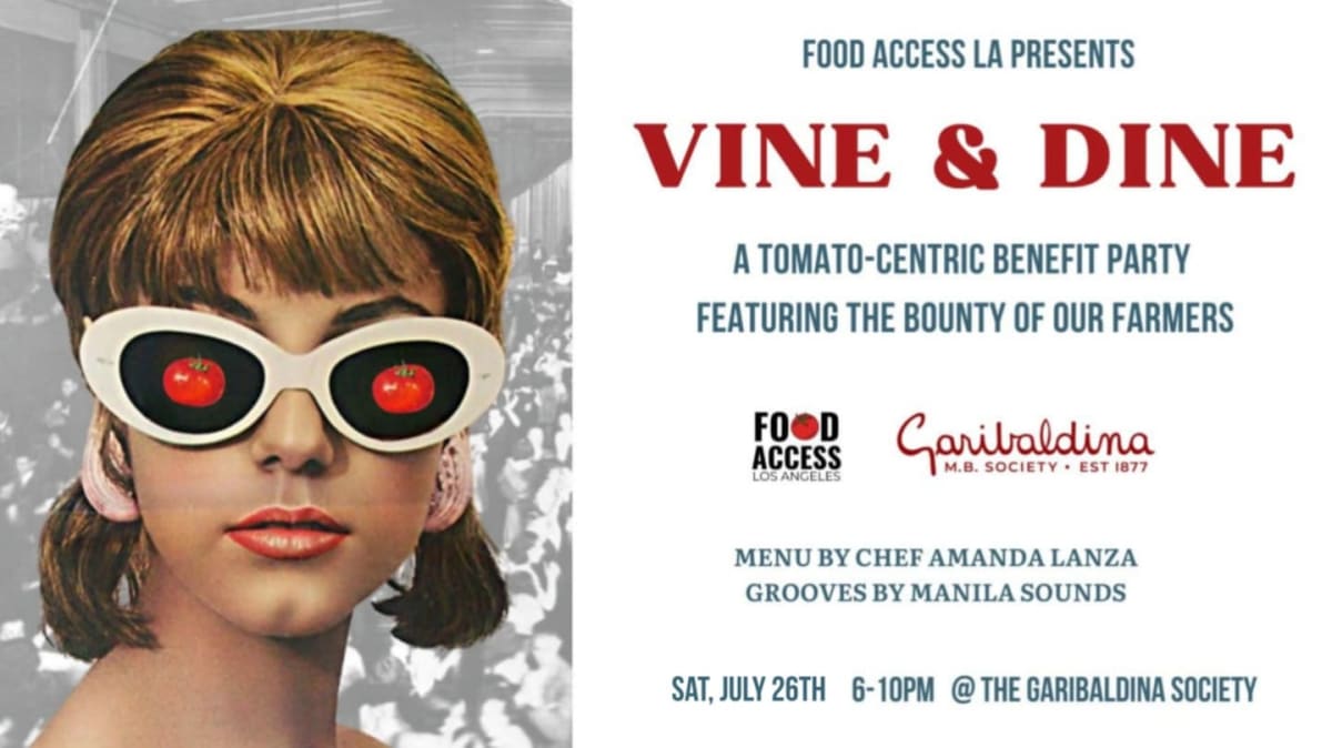 General Admission – Includes access to our tomato-themed benefit dinner at the Garibaldina Society, featuring a multi-course buffet by Chef Amanda Lanza, live music by Manila Sounds, games, and raffle. Your ticket supports Food Access LA’s mission to feed communities and uplift local farmers. 21+ only!