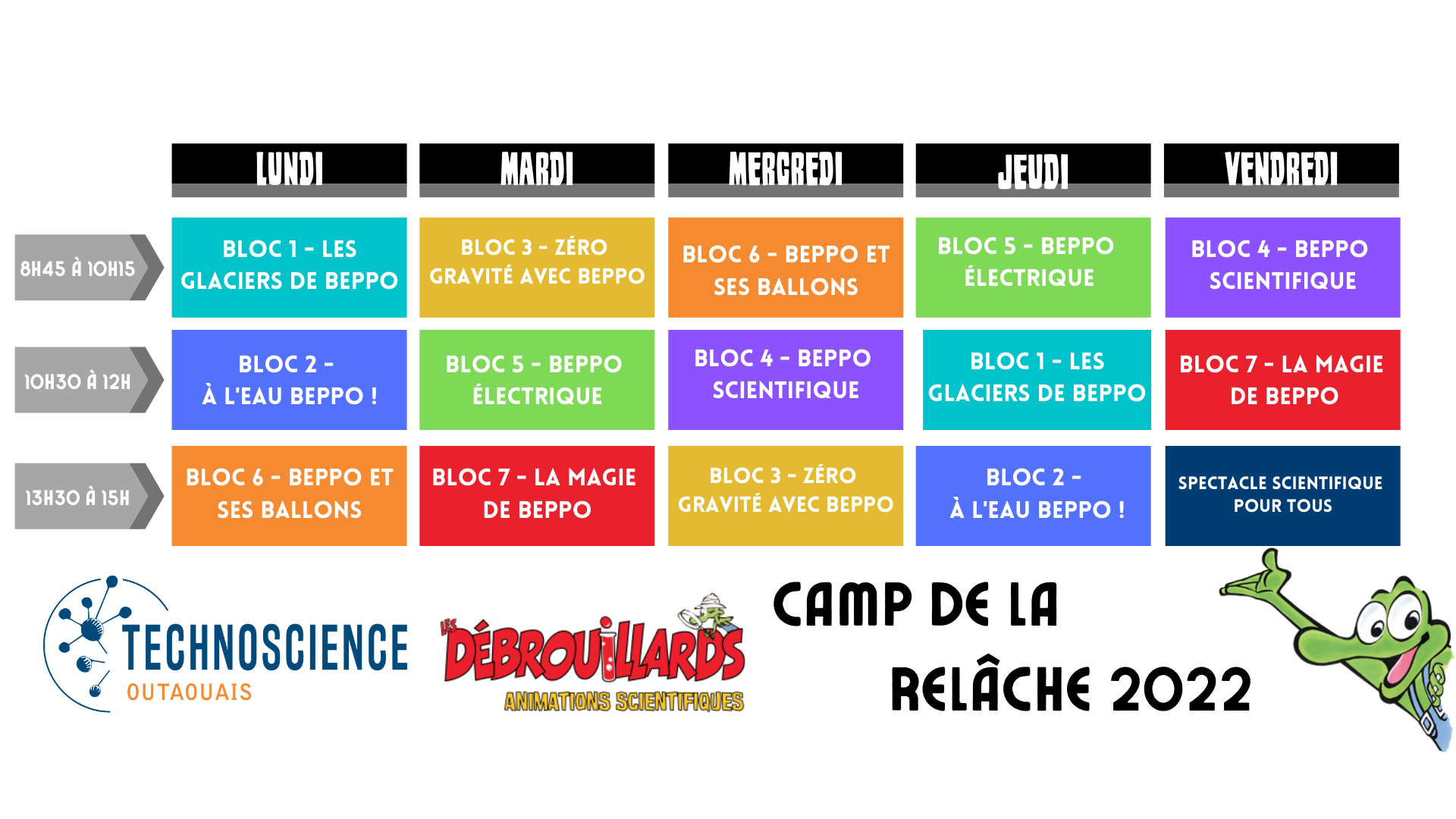 Mardi 1 mardi 2022 de 8h45 à 10h15. Bloc 3 - Zéro Gravité avec Beppo. Aucun matériel ne sera fourni. Vous recevrez la liste de matériel nécessaire après l'inscription.