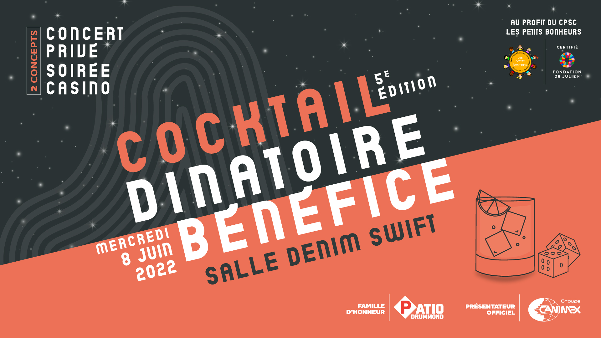 Pour 8 billets - Cocktail dînatoire - soirée casino débutant à 18h00.