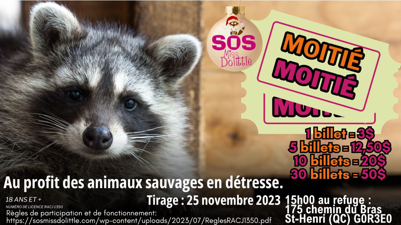 Date, heure et lieu du tirage : 25 novembre 2023 à 15h00 au 175 chemin du Bras, St-Henri, Québec, G0R3E0 /