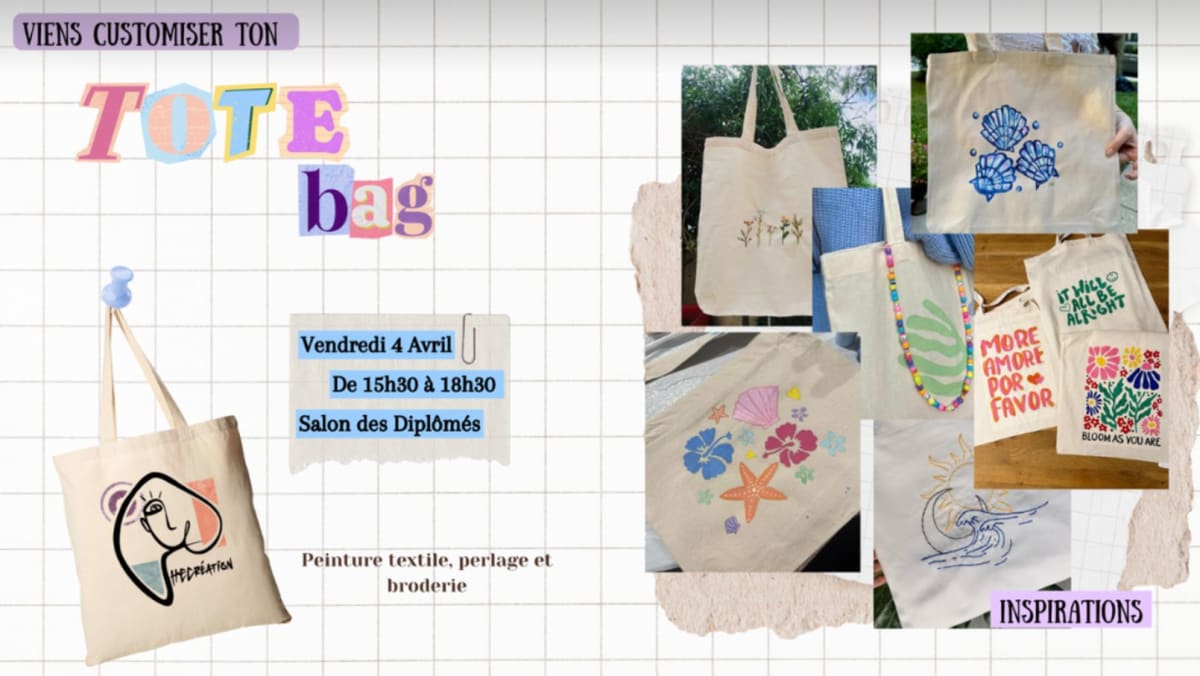 (Taxes comprises) Dans ce billet, ramène ton propre Tote Bag que tu souhaites personnaliser !