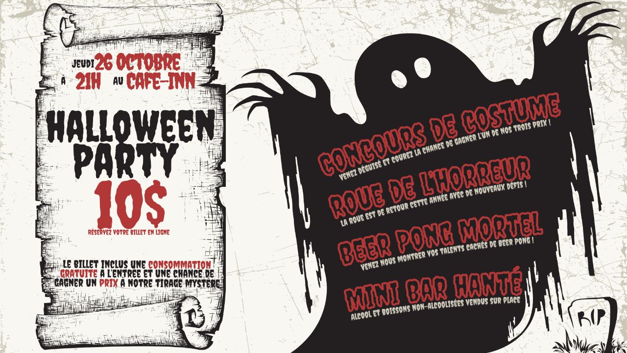Le billet qui te donne accès à ton party d'Halloween!!!! Arrive avant 23h pour garantir ta place, l'accueil ferme après! Le party dure jusqu'à 3AM!!!