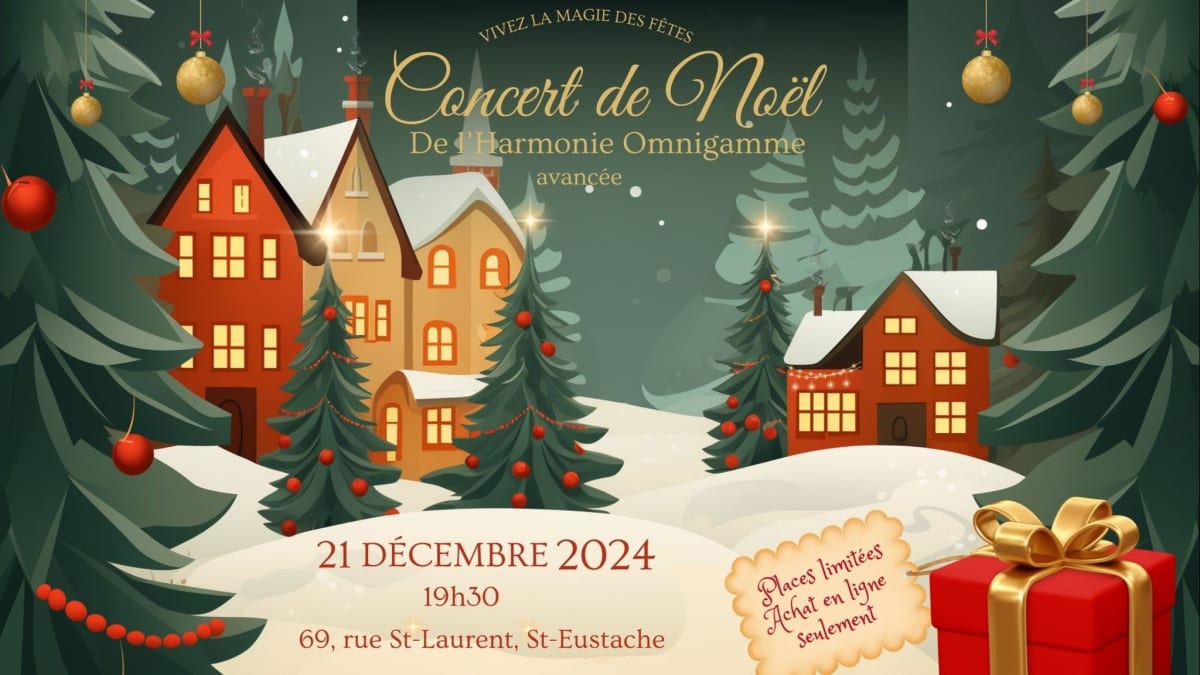 Concert de Noël de l'harmonie Omnigamme avancée. TOUS LES BILLETS SONT VENDUS. SEULE POSSIBILITÉ DE SE PRÉSENTER À LA GÉNÉRALE LE VENDREDI 20 DÉCEMBRE À 19h30. PRIX RÉDUIT 10$ COMPTANT