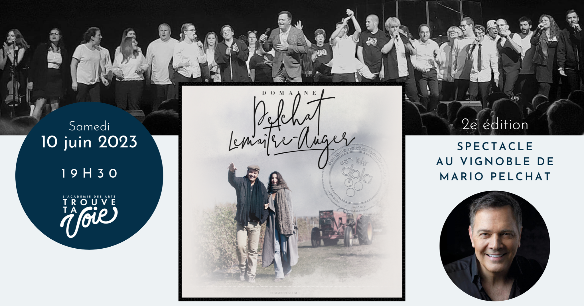 Inclut des places privilégiées, une bouteille de vin du vignoble Pelchat-Lemaître-Auger et des produits faits à la main par les membres de l'Académie des arts Trouve ta voie.