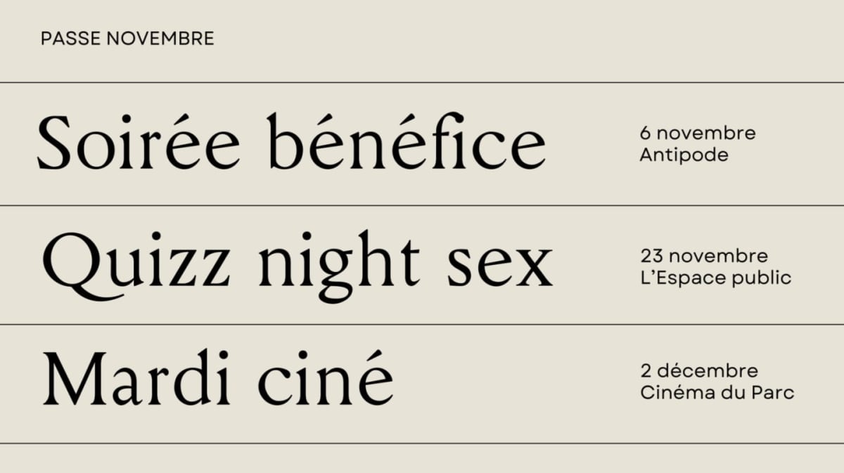 La passe vous donne accès aux trois événements payants prévus dans le cadre la campagne de don 2025 de Les 3 sex*