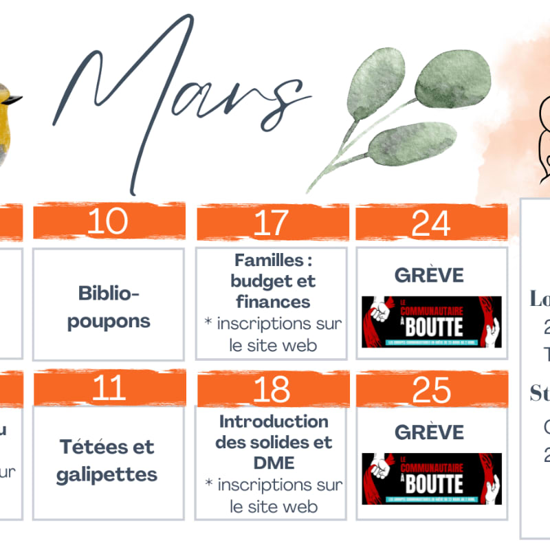 Les coquilles et poussettes devront être laissées à l'extérieur de la salle.