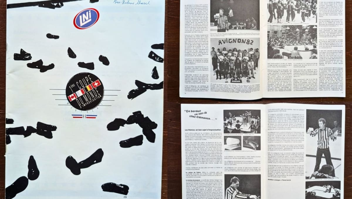 Petit trésor pour les amateur·trice·s d’impro et d’histoire du théâtre québécois : le programme officiel de la première Coupe du monde d’improvisation, présentée à Montréal en 1985. Complet et détaillé, il regorge d’informations sur l’histoire de la LNI, les règlements officiels, les équipes participantes et bien plus. Fait saillant : il s’agit de l’exemplaire ayant appartenu à Rose-Hélène Gravel, la mère de Robert. Rappelons que la LNI a été cofondée sous l’égide du NTE en 1977 par Yvon Leduc et Robert Gravel.