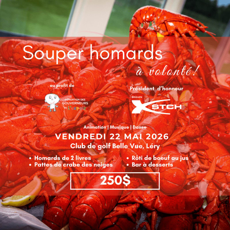 1 participation au Souper Homards, pattes de crabe des neiges et rôti de boeuf à volonté (Table de 8 personnes) **Billet non remboursable**