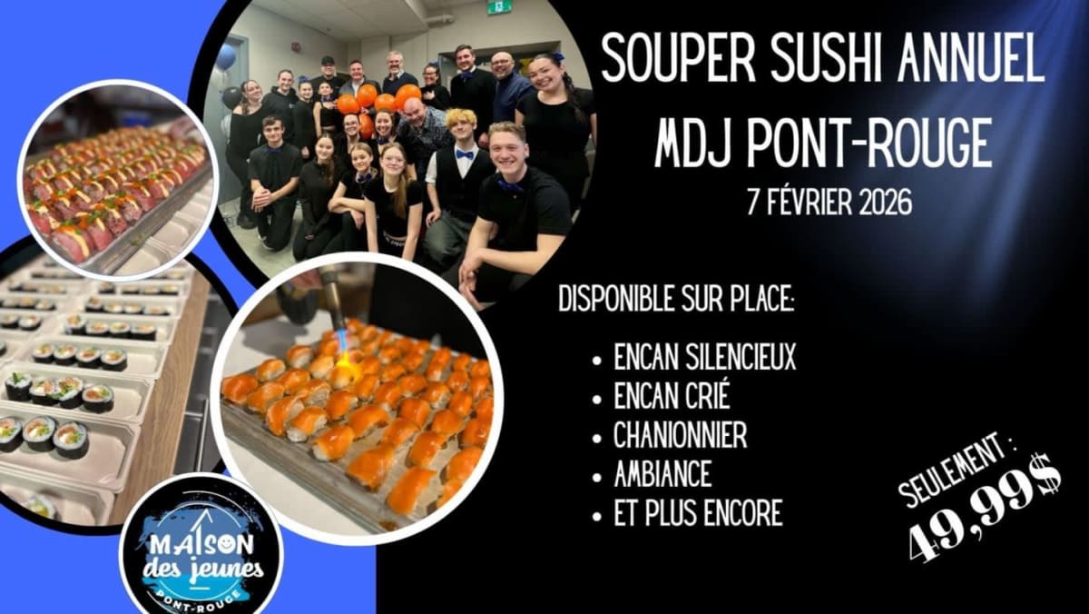Ce billet confirme votre inscription au souper sushi – option régulier.