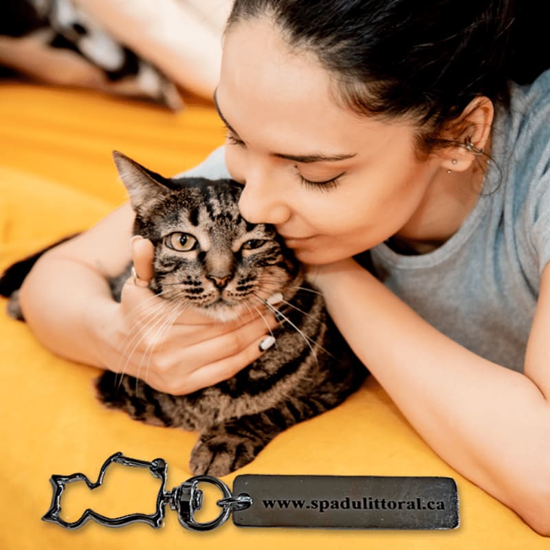 Porte-clés en acier inoxydable gravés au laser - Forme Chat avec Crochet à Ressort Tournant - Inscription du Site Web de la SPAL