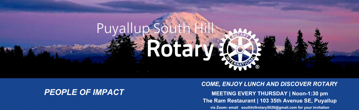 The Rotary Club of Puyallup South Hill Charities Funds, founded in 1995, brings leaders together to build goodwill and give back to the community. They provide scholarships to local high schools and support transitional housing. Their motto is "Service Above Self,"